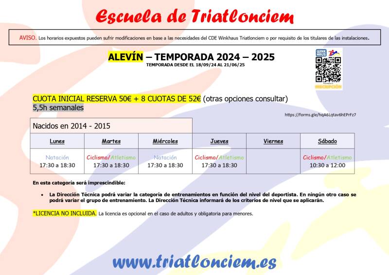 - Las altas posteriores al inicio del periodo de 42 semanas de entrenamiento tendrán que ingresar la matricula y la parte proporcional de las semanas de entrenamiento que vaya a realizar hasta el giro del siguiente recibo.